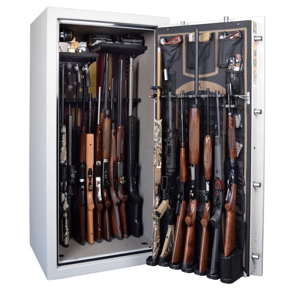 Confidently store up to 33 long guns behind premium security features and patriotic styling.