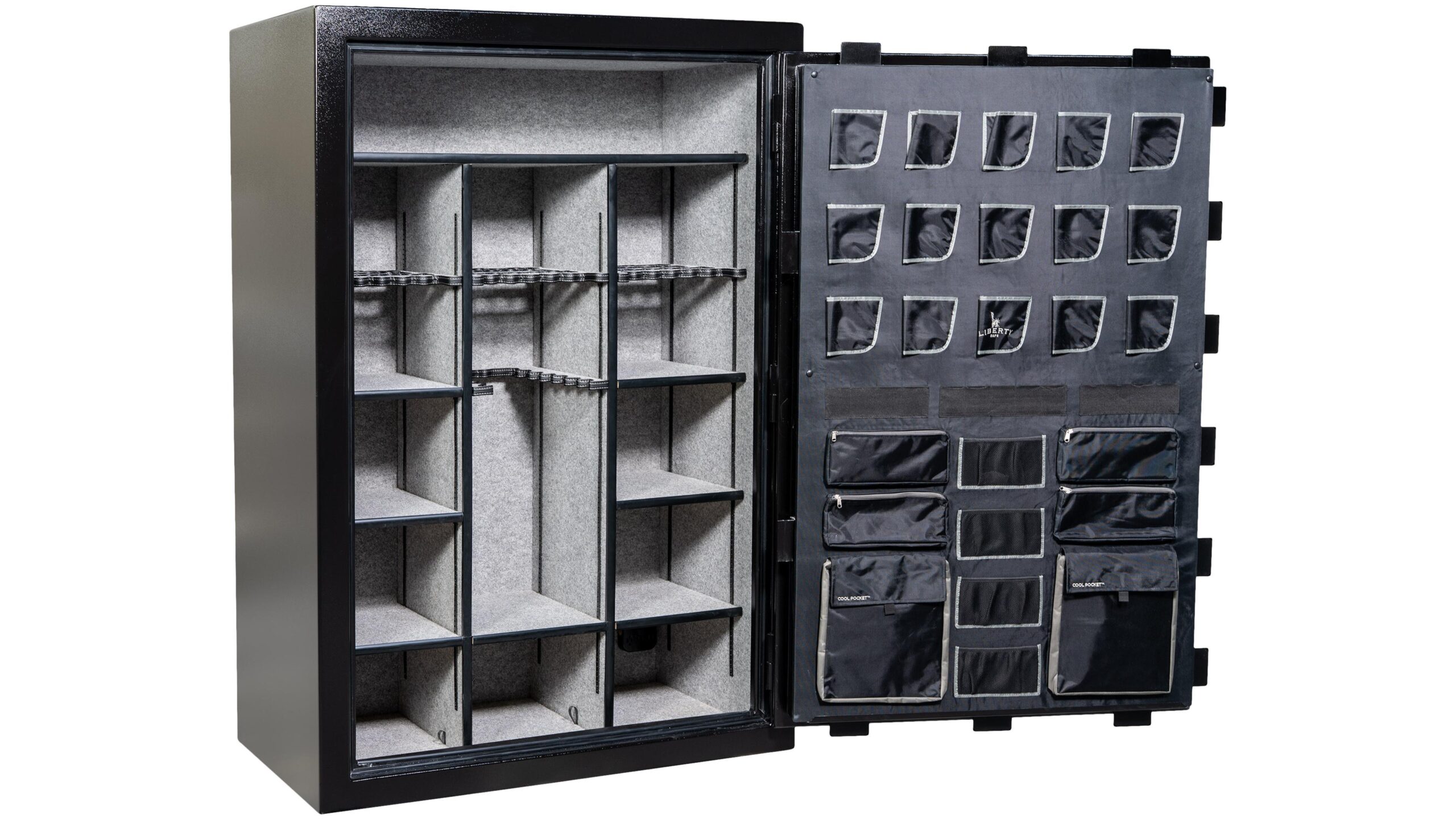 Top-of-the-line fully upholstered 6-in-1 Flex adjustable interior provides ultimate storage customization with slots for up to 72 long guns.