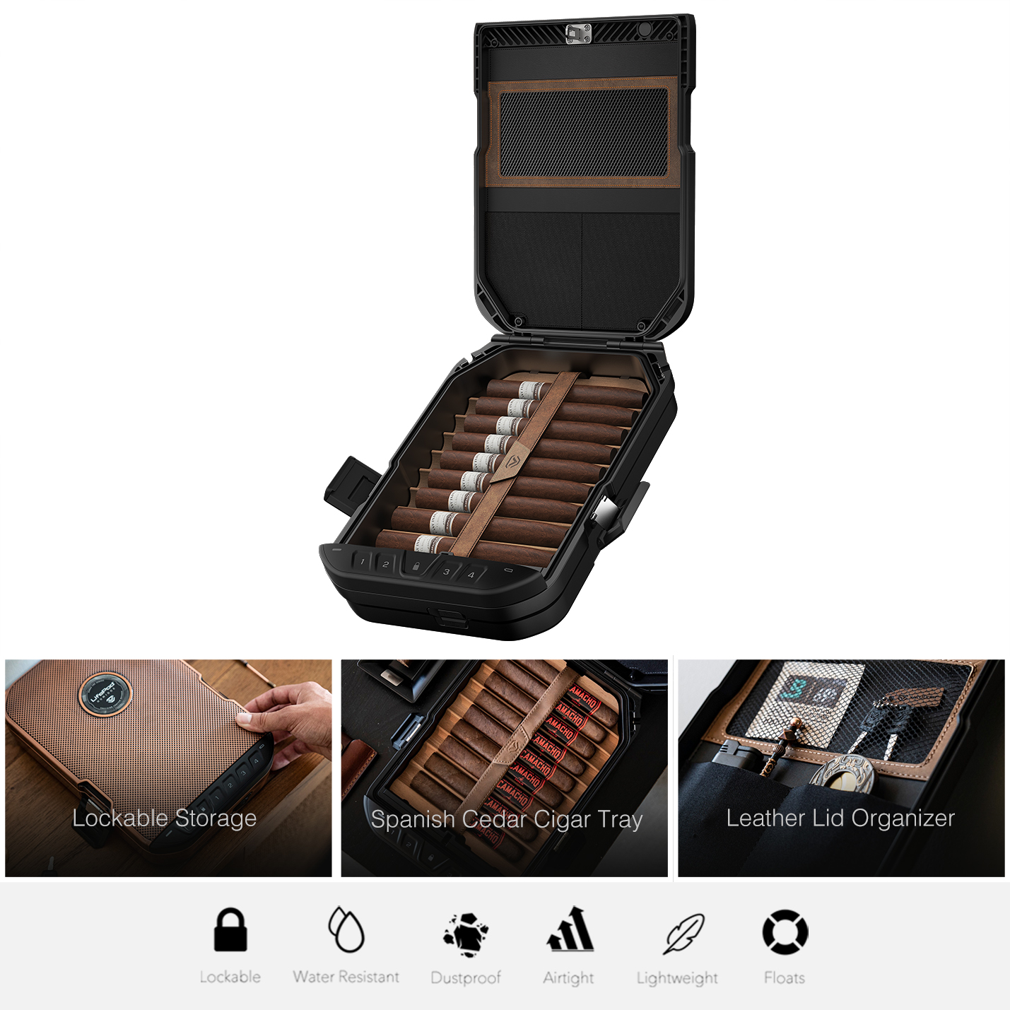 Advanced non-metal polymer construction provides lightweight portability with superior strength, drop-tested to protect increased cigar capacity during transport.