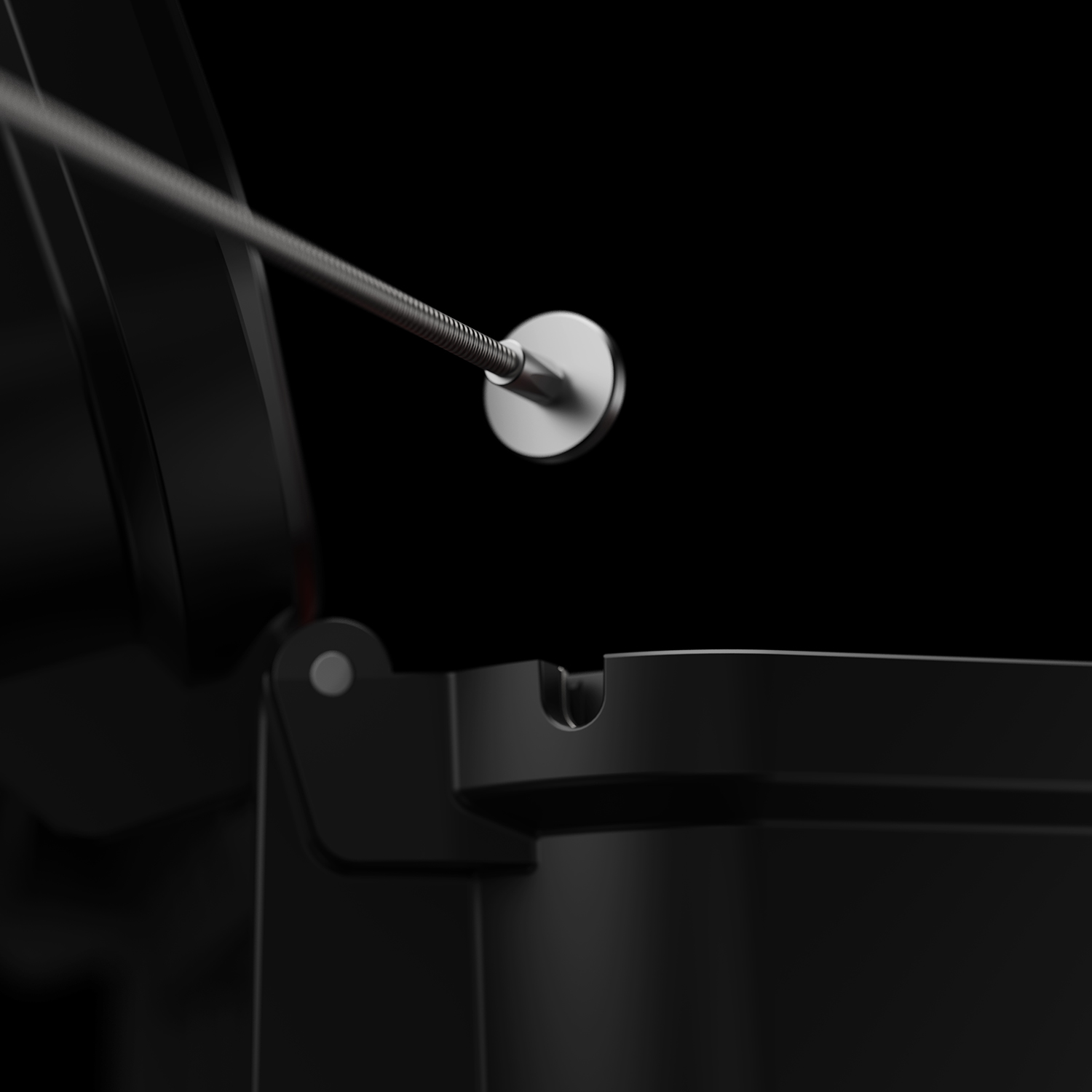 The precision-engineered dual anti-impact latches secure the range equipment during transport. Reinforced steel interior hinge system and quick-release security cable mount complete the anti-theft protection.